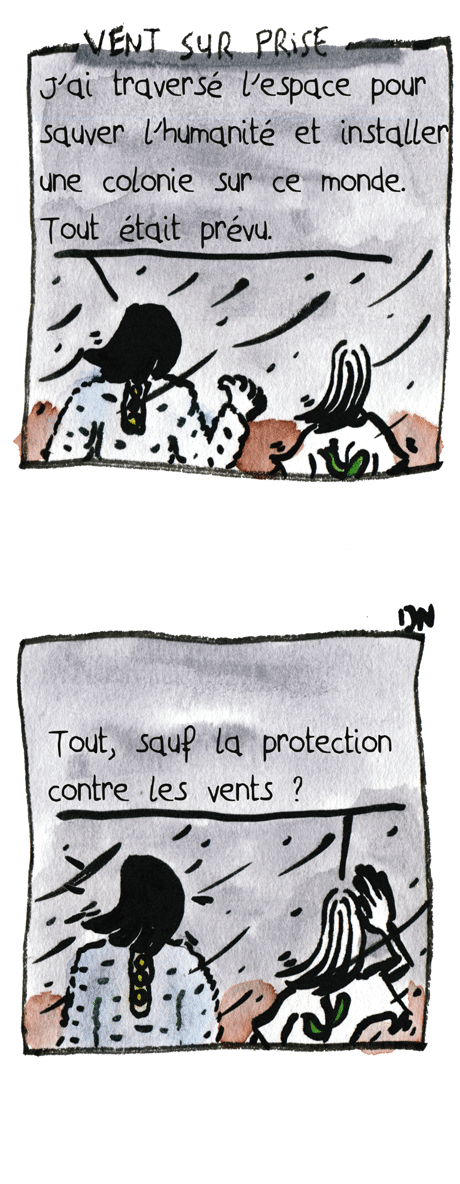 VENT SUR PRISE : – J’ai traversé l’espace pour sauver l’humanité et installer une colonie sur ce monde. Tout était prévu. – Tout, sauf la protection contre les vents ?