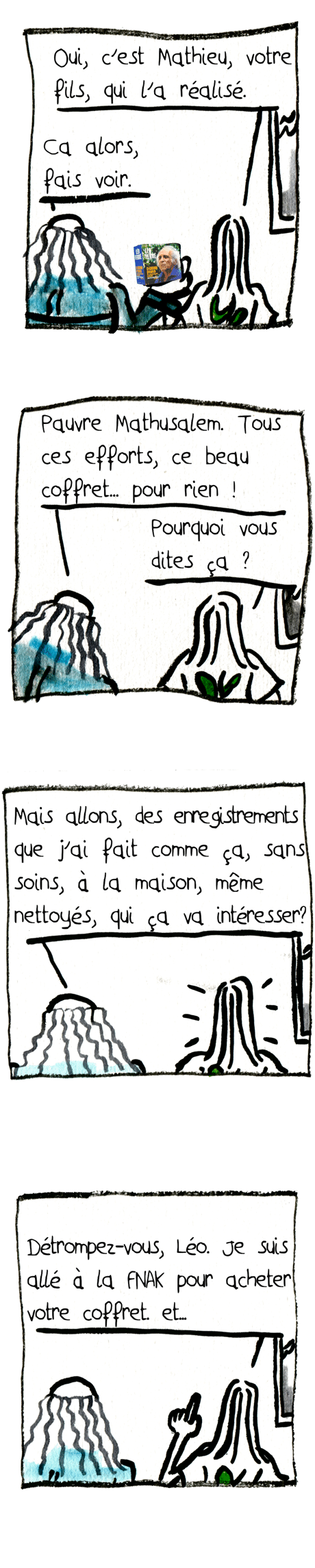Dans cette chronique dessinée prépubliée sur A VOIR A LIRE, Zéda retrouve Léo Ferré pour une grande nouvelle ! une histoire qui intègre un peu de musique, où je recrée un accompagnement sur la voix de Léo Ferré sur une de ces anciennes chansons des années cinquante.