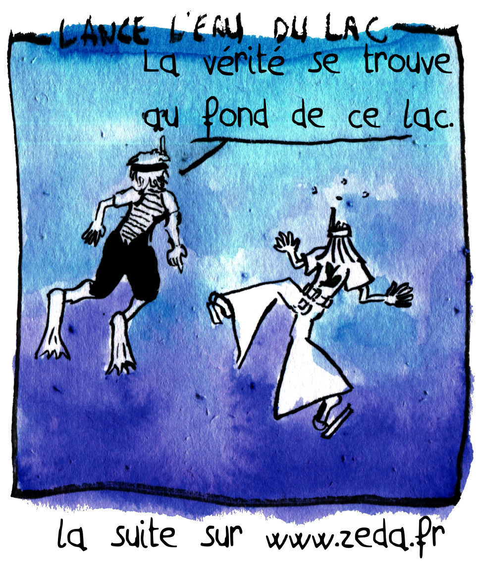 LANCE L’EAU DU LAC : – La vérité se trouve au fond de ce lac. – On pourrait peut-être envoyer une sonde au lieu d’y aller nous-même ?