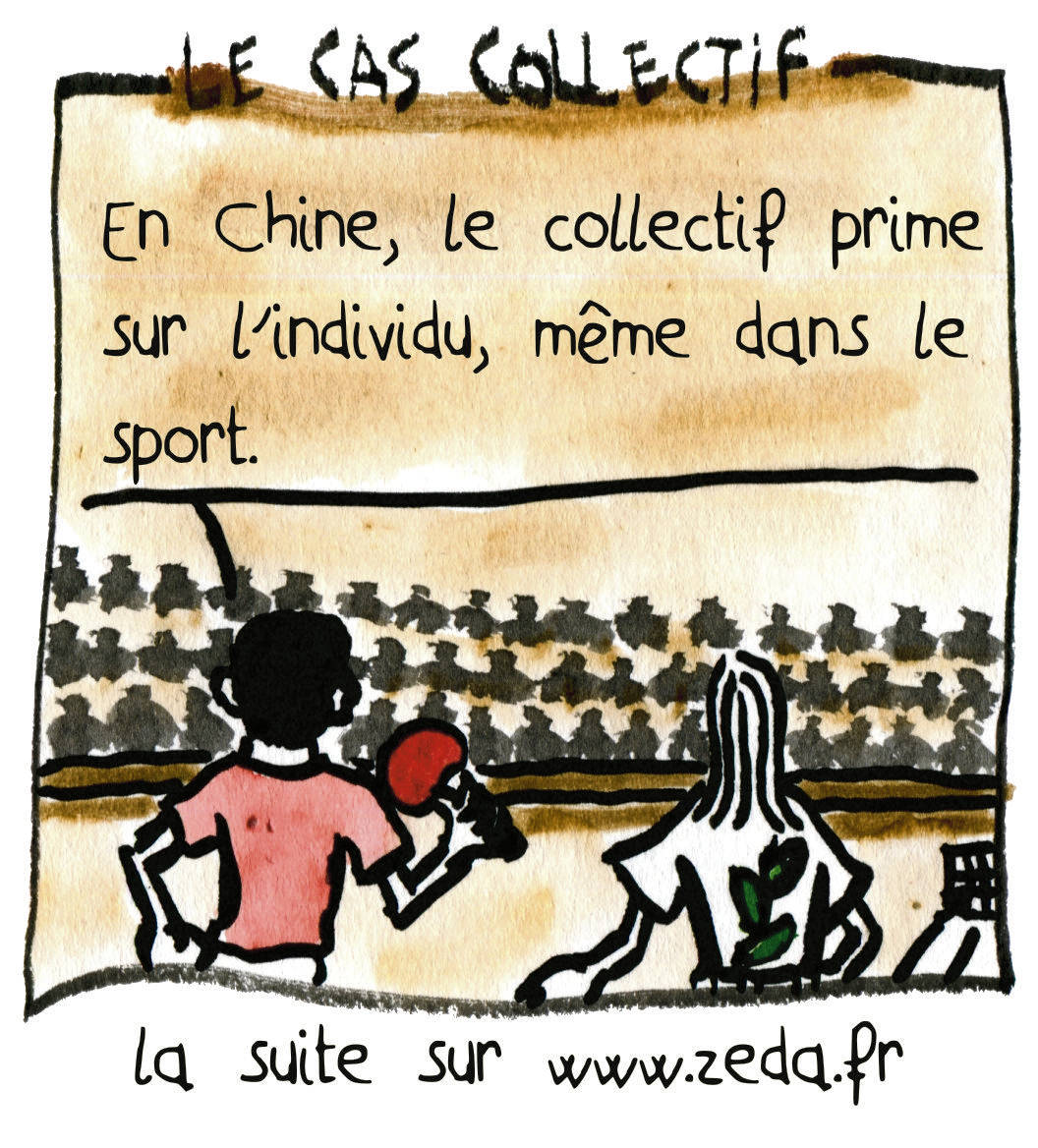 LE CAS COLLECTIF : – En Chine, le collectif prime sur l’individu, même dans le sport. – Mais alors, Zhuang, au ping-pong, vous jouez à un milliard sur la table ?