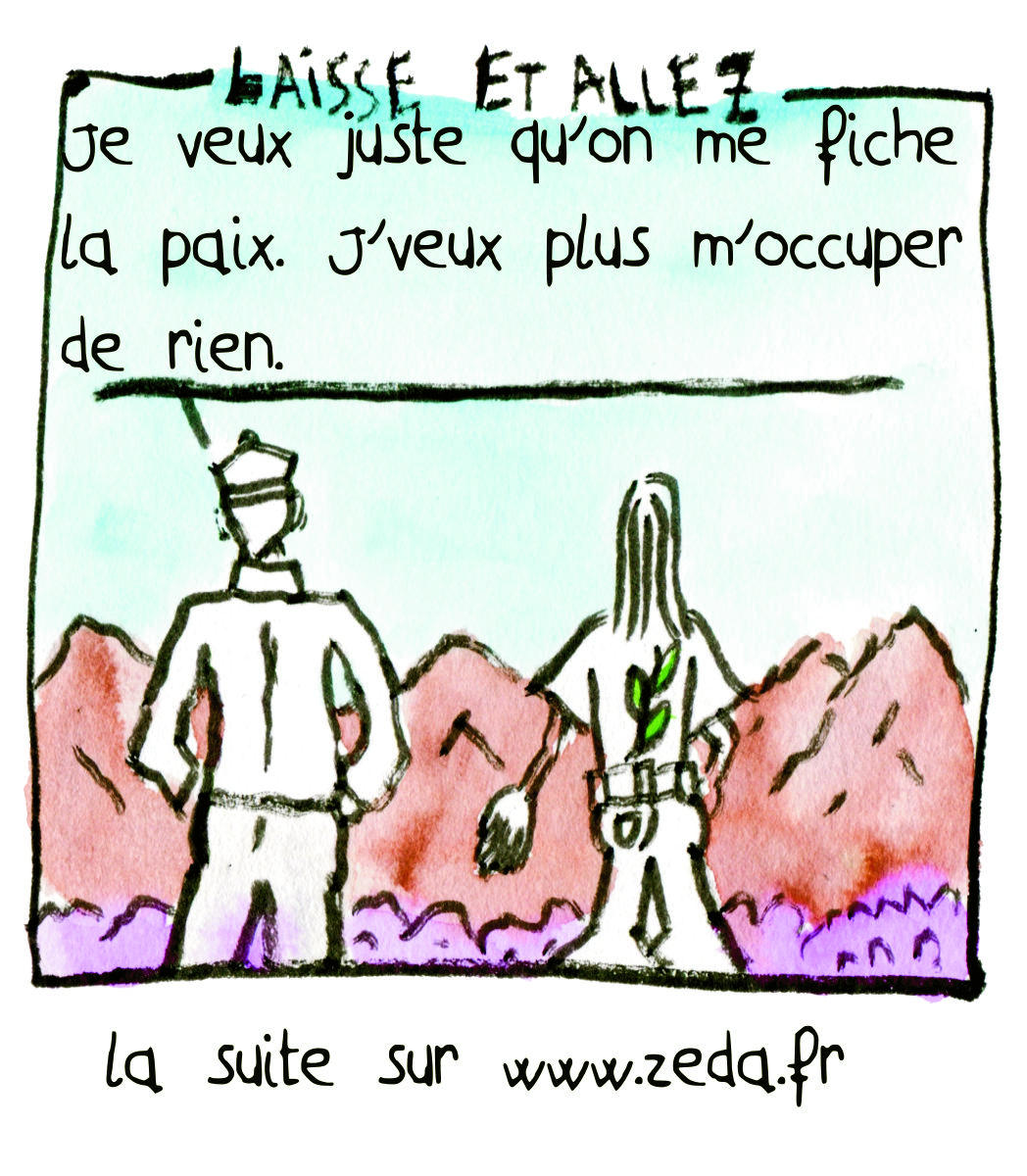 LAISSE ET ALLEZ : – Je veux juste quo’n me fiche la paix. J’veux plus m’occuper de rien. – Tonin, vous voulez quelqu’un qui s’occupe de tout pour que les gens viennent pas vous demandez quoi faire ?